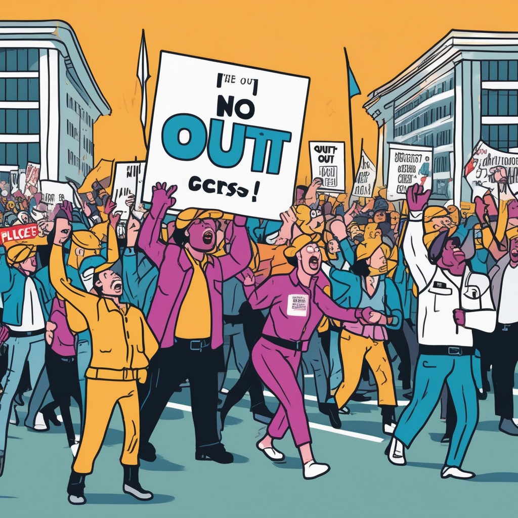 Holding placards and shouting 'OUT!' while boldly ignoring restricted zones!