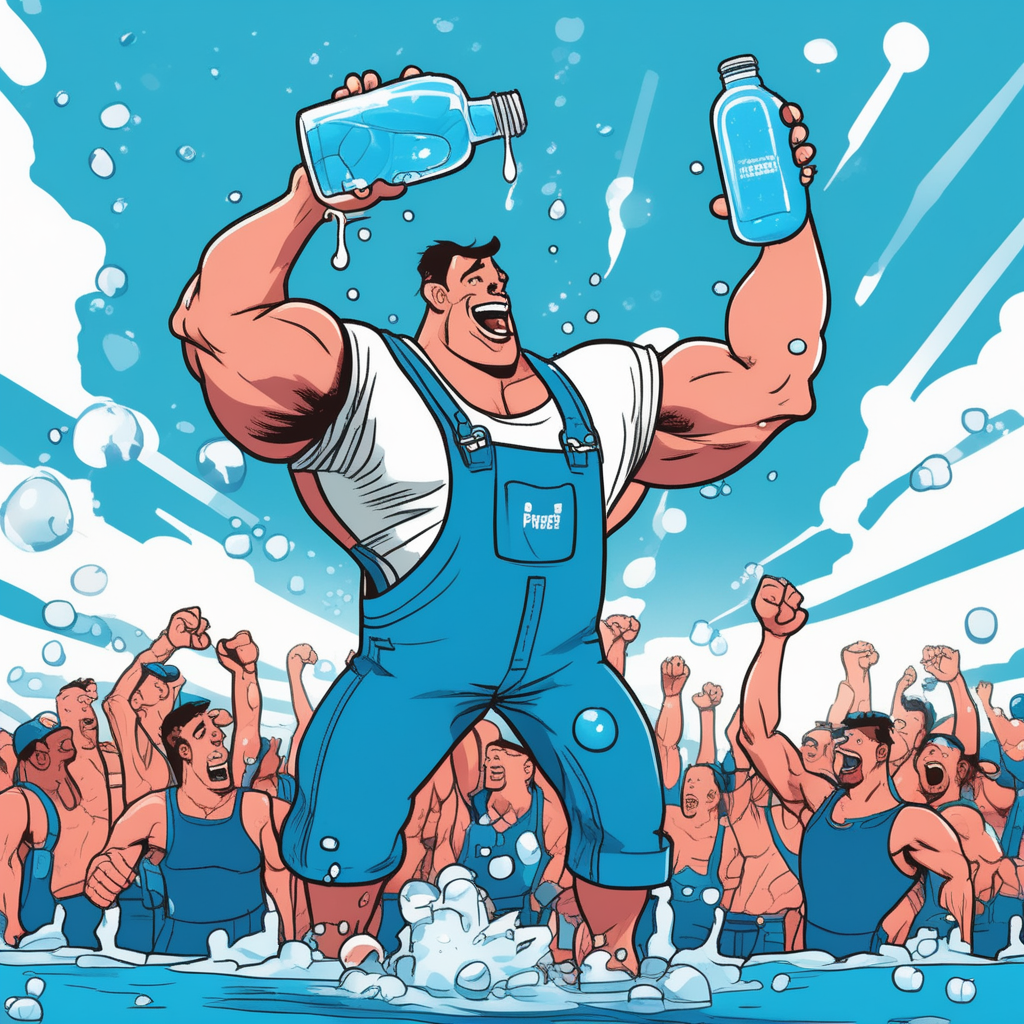 포터가 블루 물병을 들고 벌컥벌컥! 이 물은 마셔도 안전해!