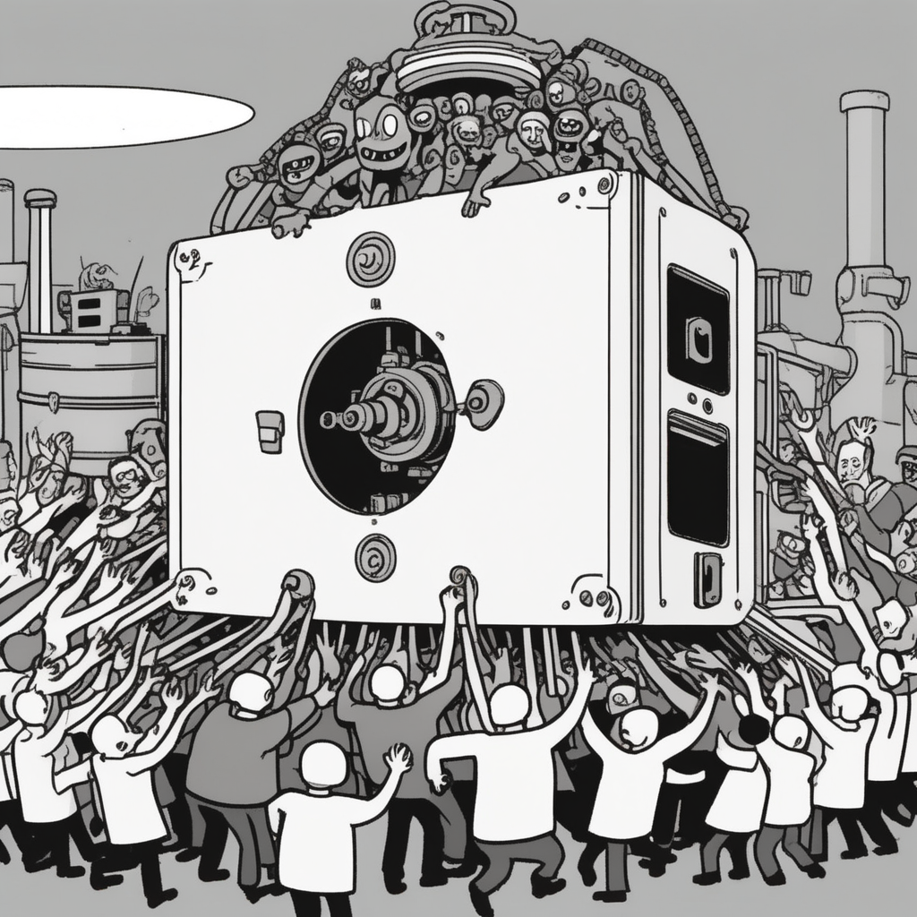 Oh! The press machine is oppressing people by crushing them down!