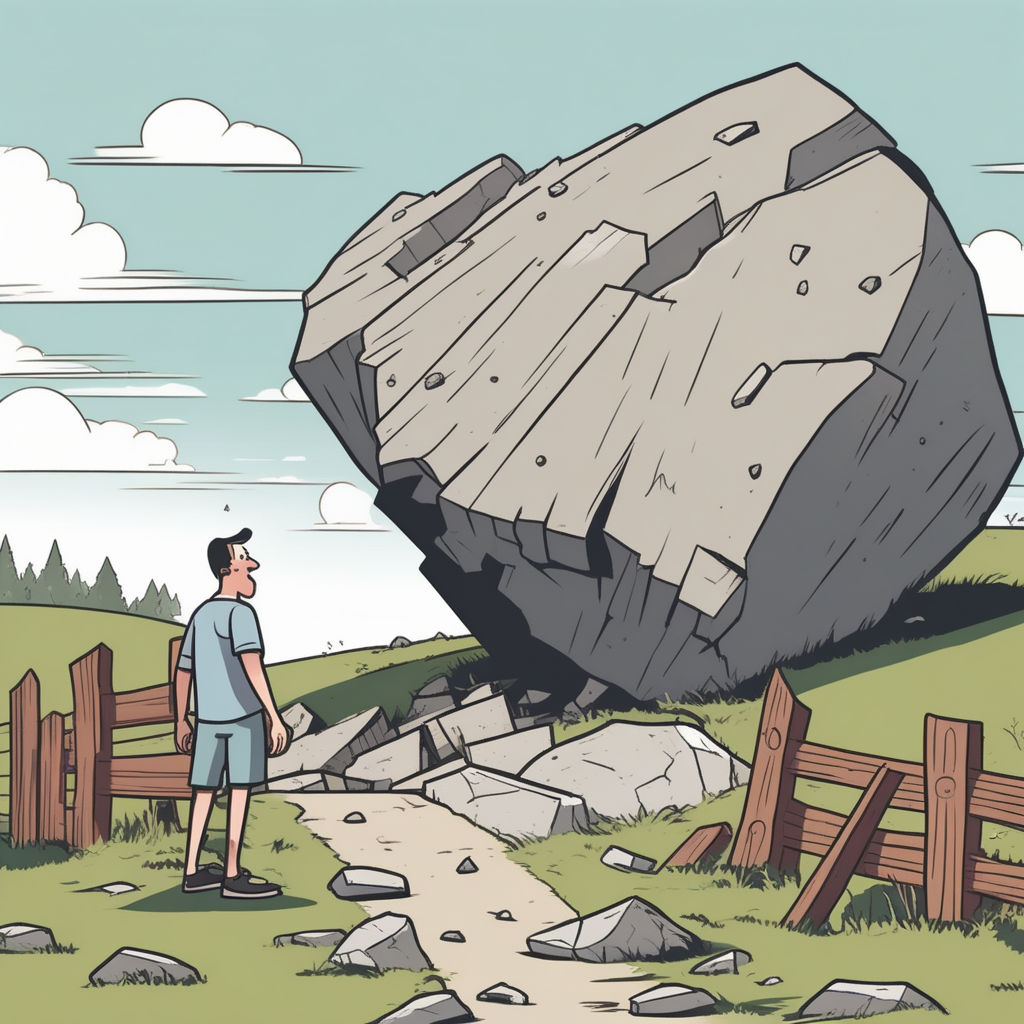 When the rock rolled over to knock over the fence, it made him shock over!