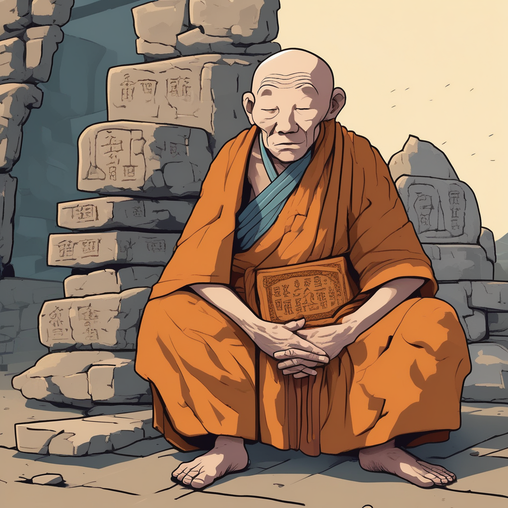 Patient wisdom beside ancient stone