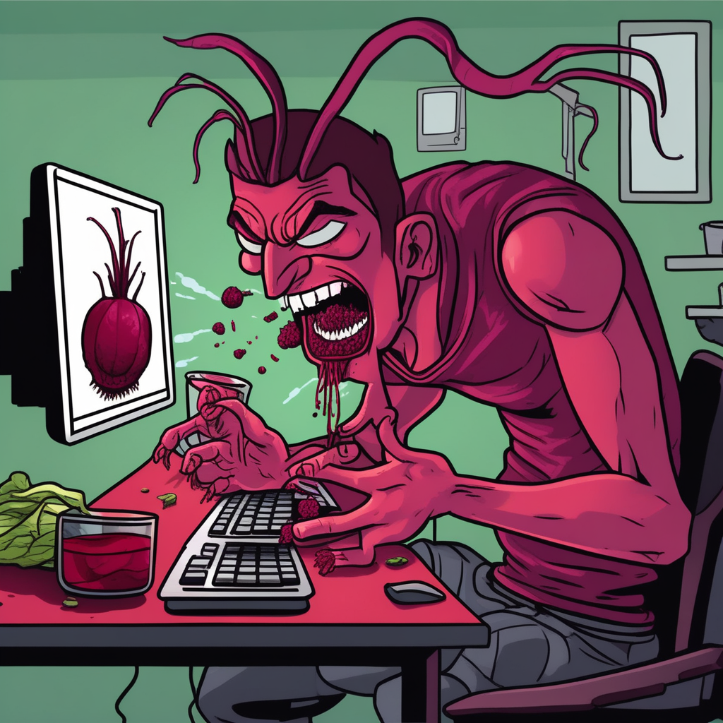 Twisting beets while spitting harsh words - so bitter it stings the heart!