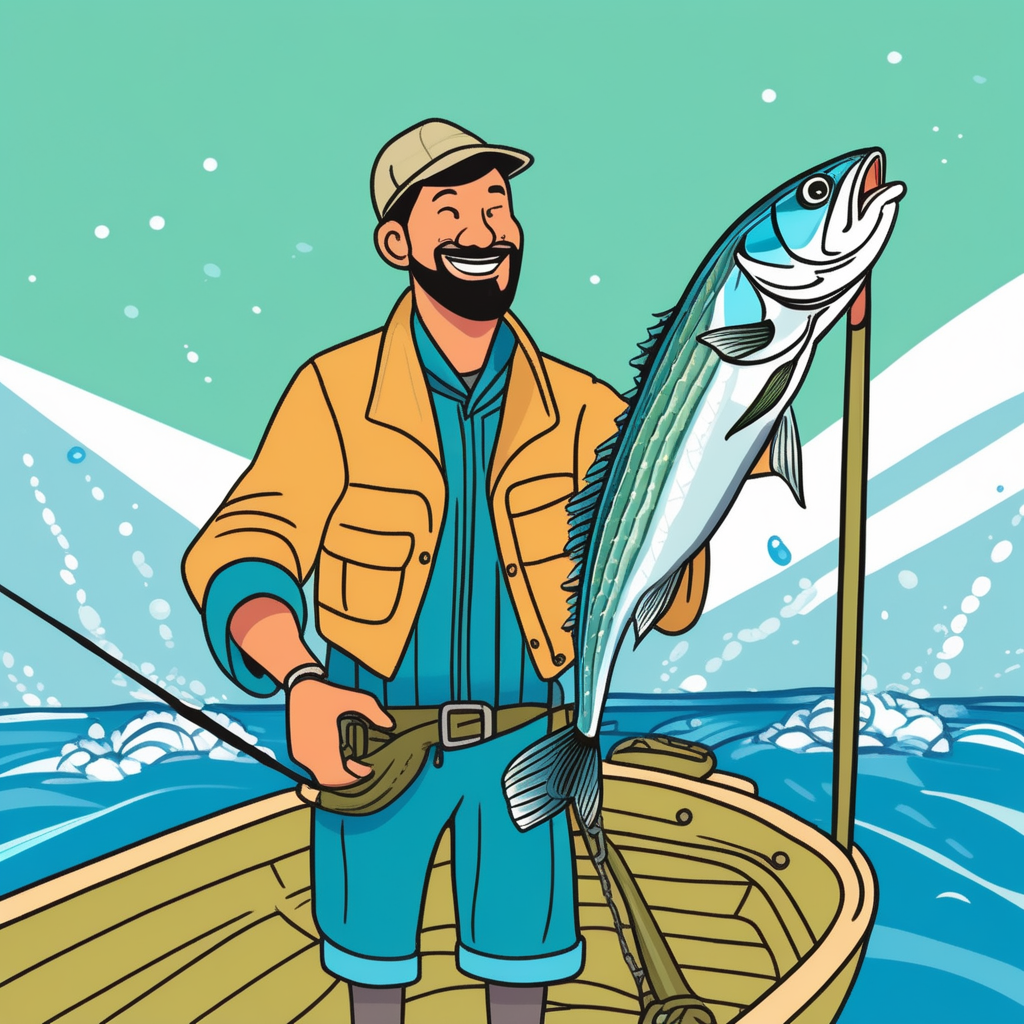 줄무늬 고등어를 잡은 어부