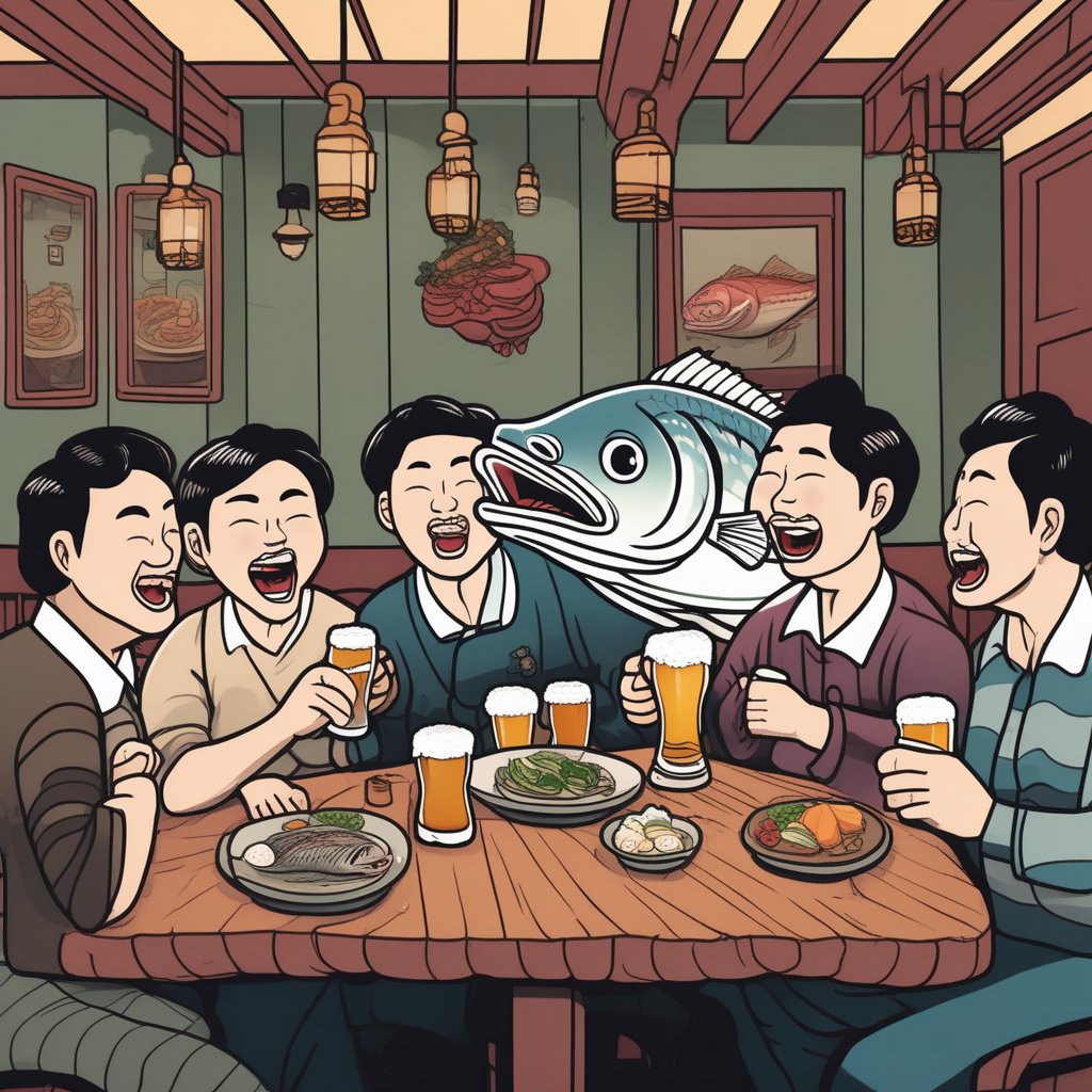 맥주 마시며 꼬불꼬불 몸을 틀고 있는 고등어!