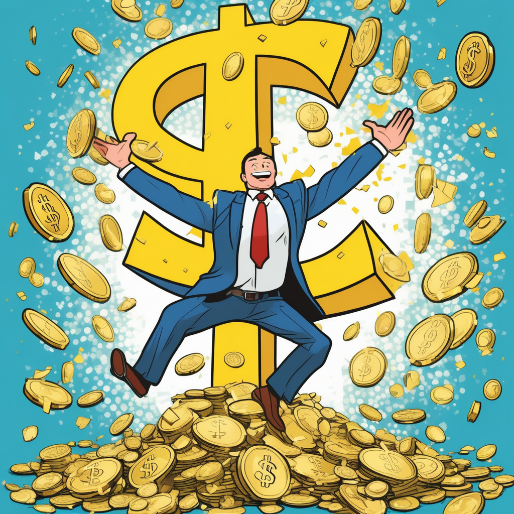 Plus rich! A businessman flourishing as money accumulates!