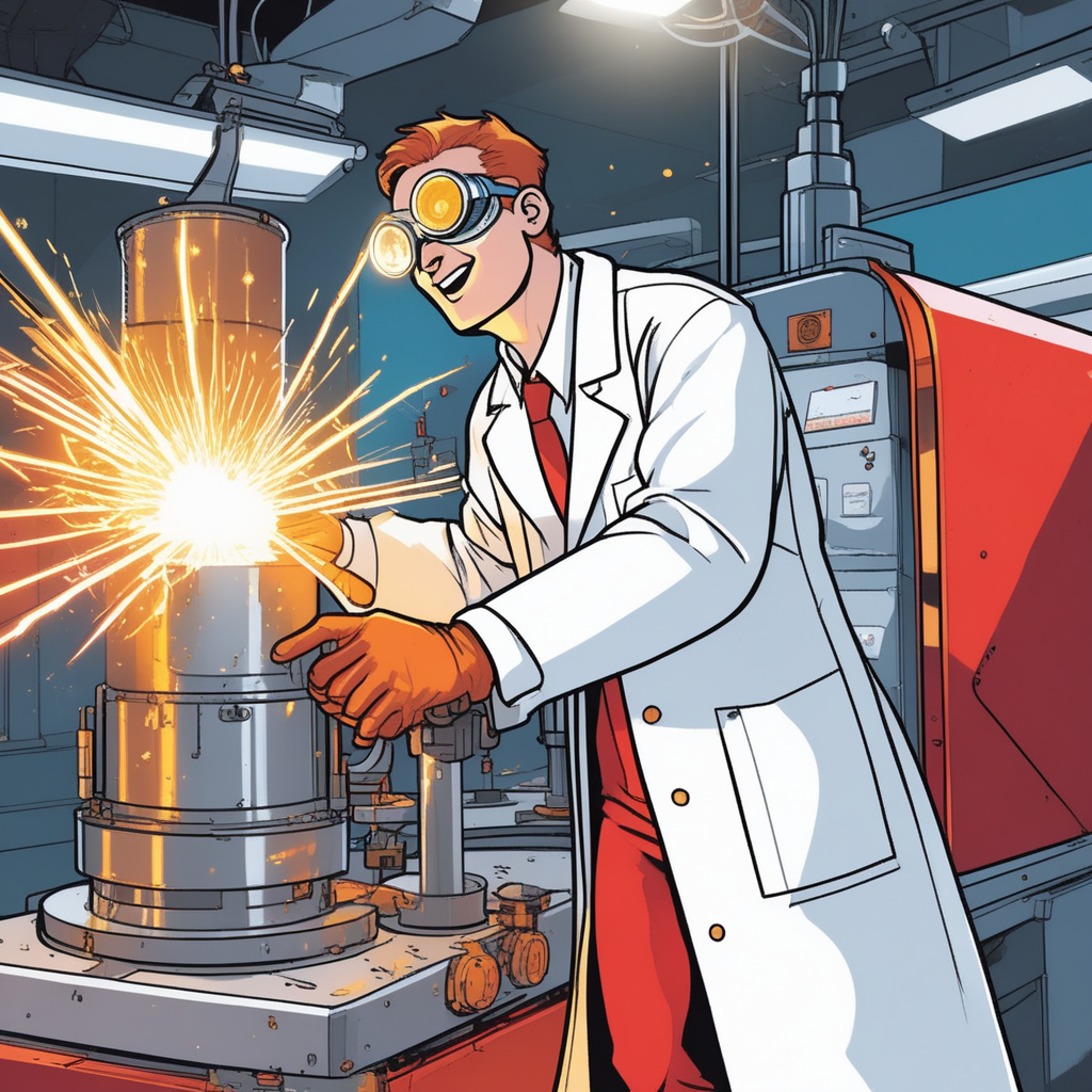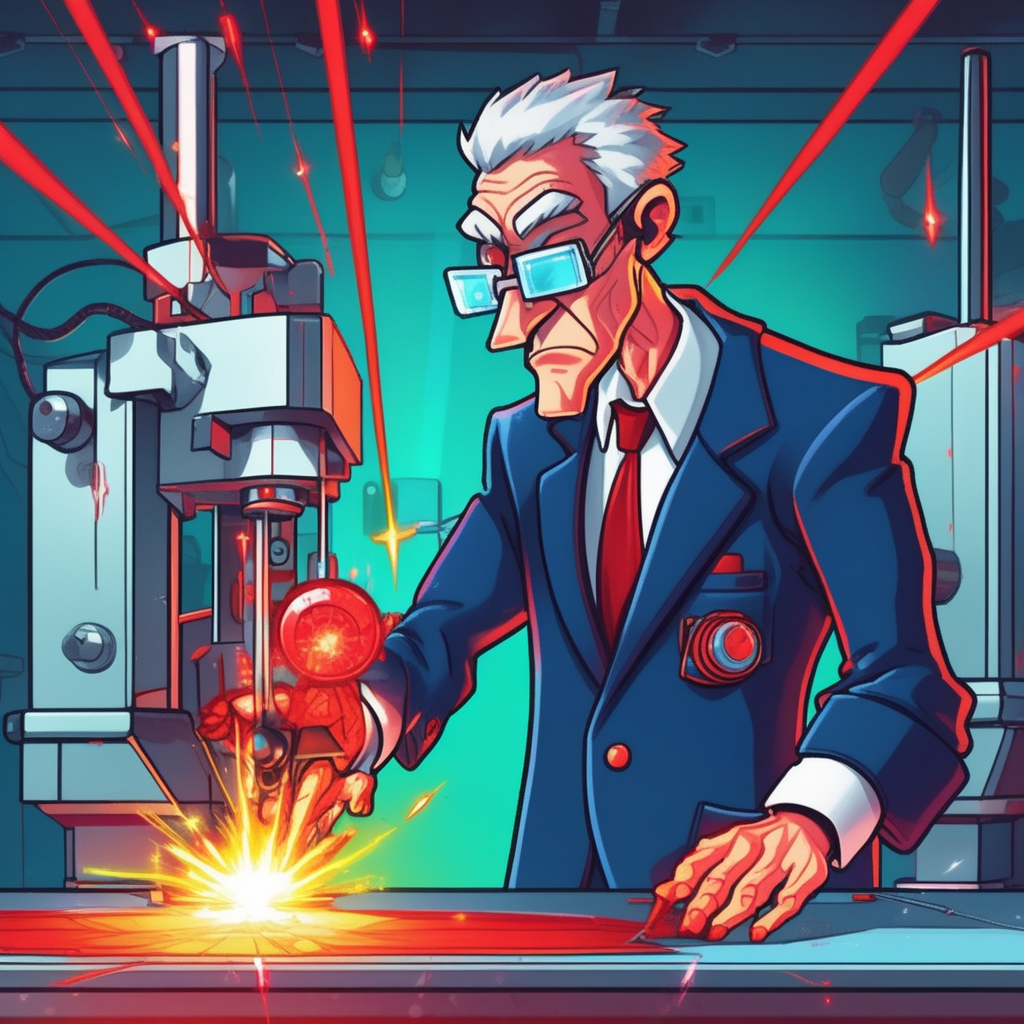 The scientist in his blazer cuts sharp as a razor with his laser!