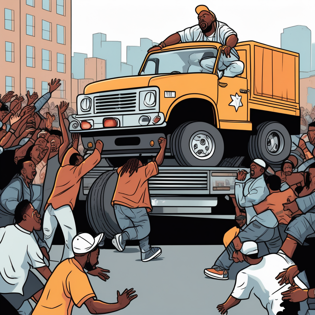 트럭 위 래퍼가 져서 디졌다! 이런 비극이!
