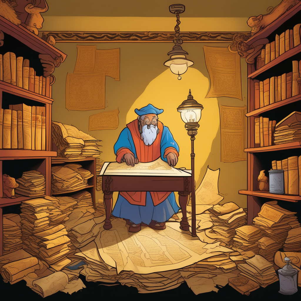 작은 방에서 양피지를 부서별로 분류하네!