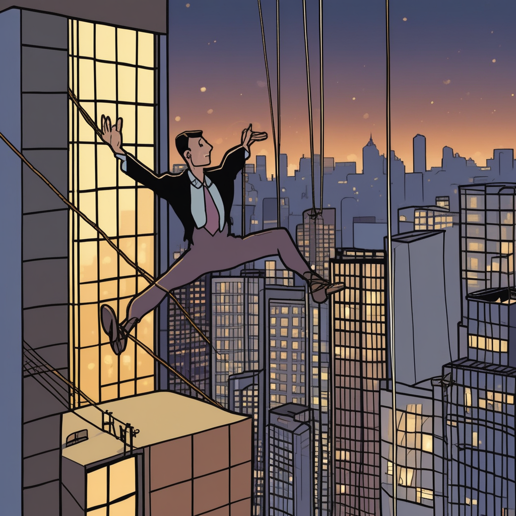 어스름한 밤, 가느다란 줄 위로 모험을 걸어!