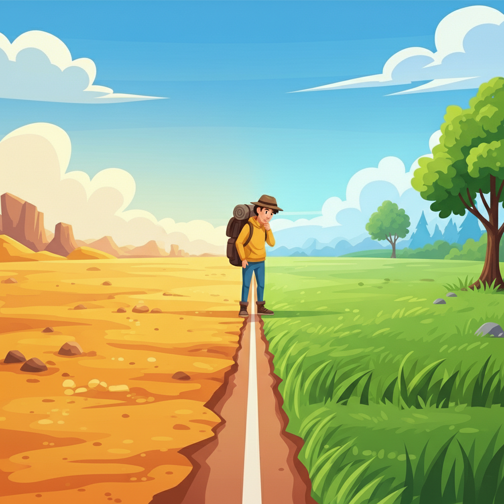 전혀 다른 두 땅의 경계선 위에 서 있다.