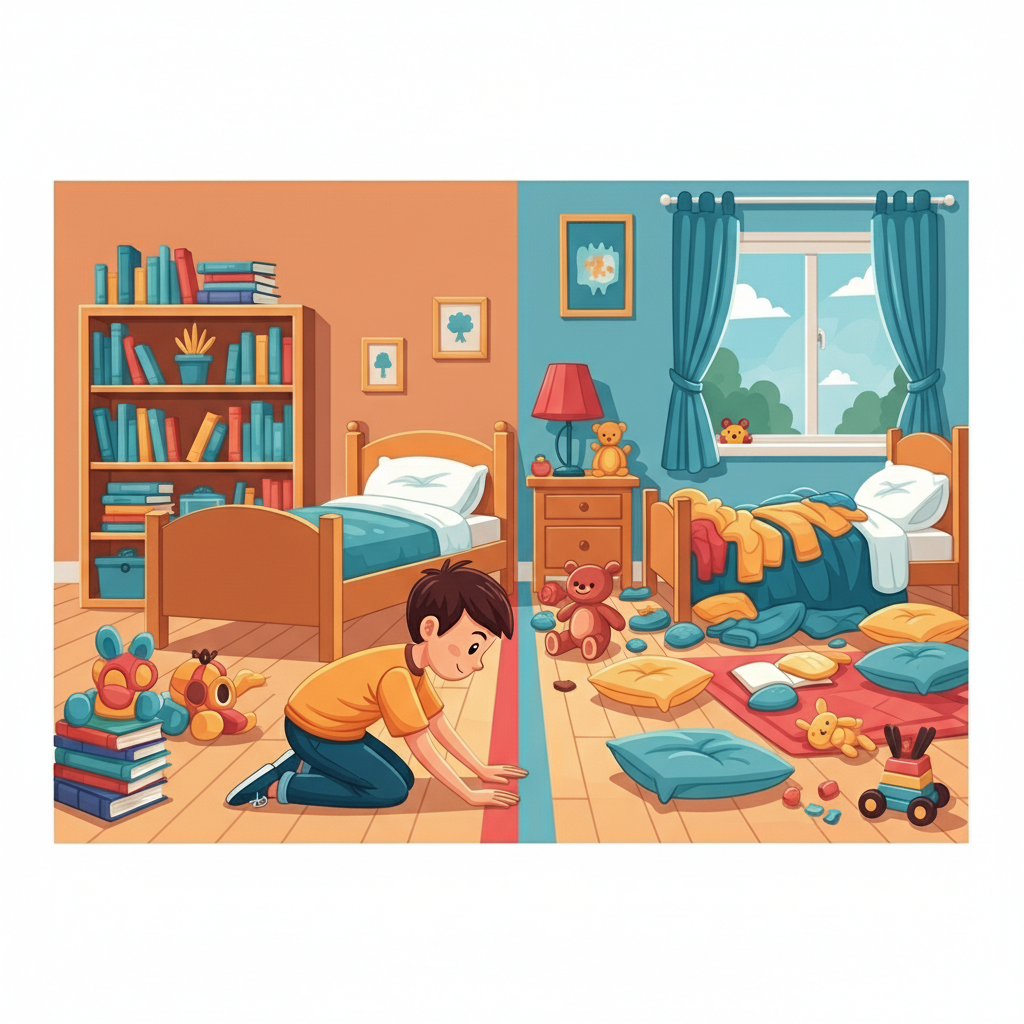 한쪽은 정돈되고, 다른 쪽은 어지럽다. 그 경계가 둘을 가른다.