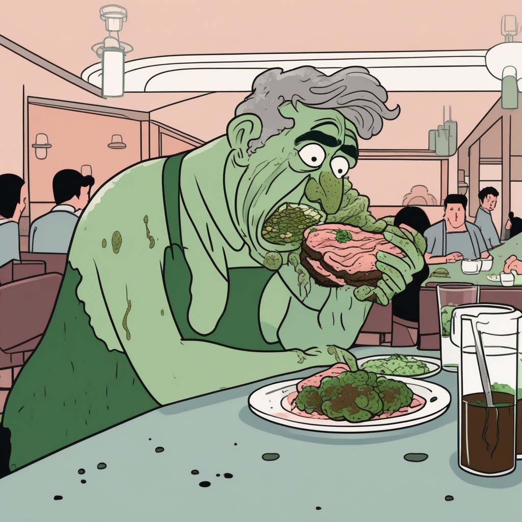 학교 급식의 초록색 정체불명 고기가 너무 맛없어 보여서 가장 배고픈 학생들도 거르고 지나갔다.