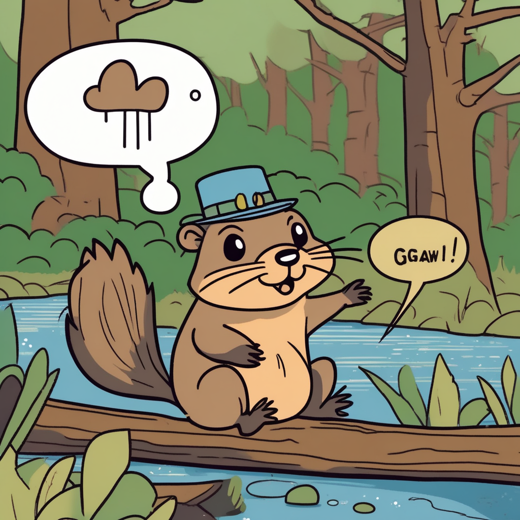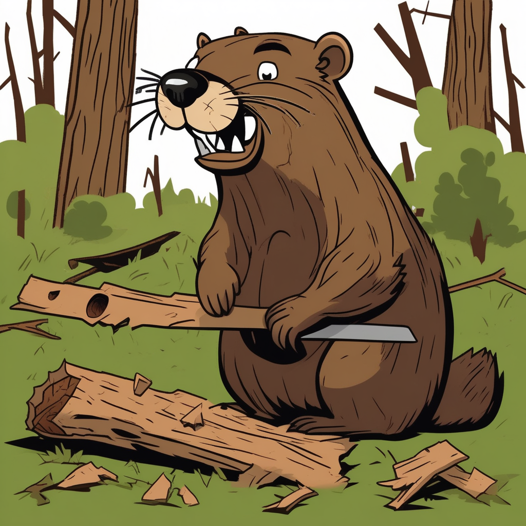 비버가 '나는 갉아! 나는 갉아!'를 외치며 열심히 나무를 갉아먹고 있어요!