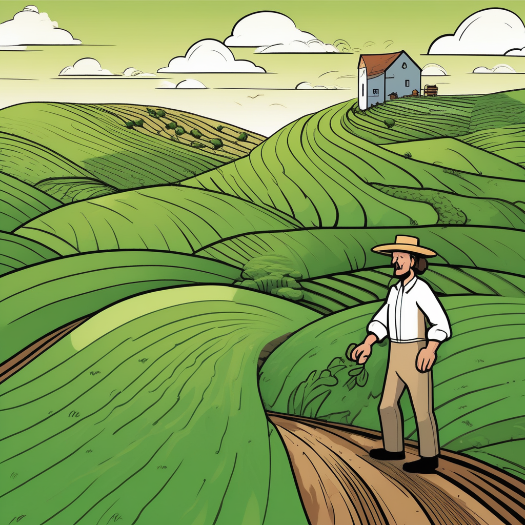 Hills undulate like waves! The farmer struggles to balance on the rolling terrain!