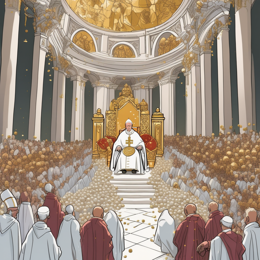 페이! 펄! 교황님께 진주를 바치며 돈을 지불하는 신자들!