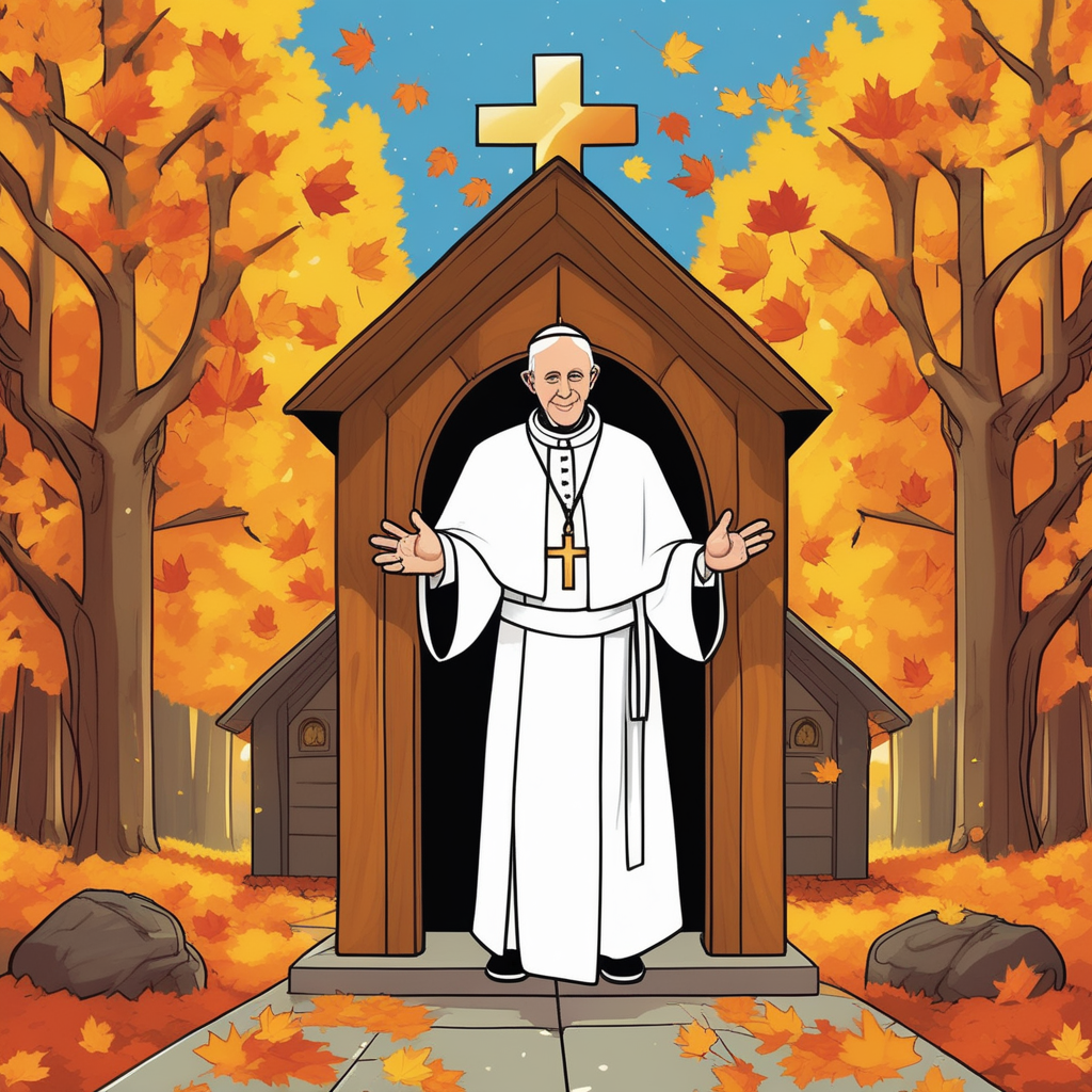 교황이 단풍 성당에서 기도한다