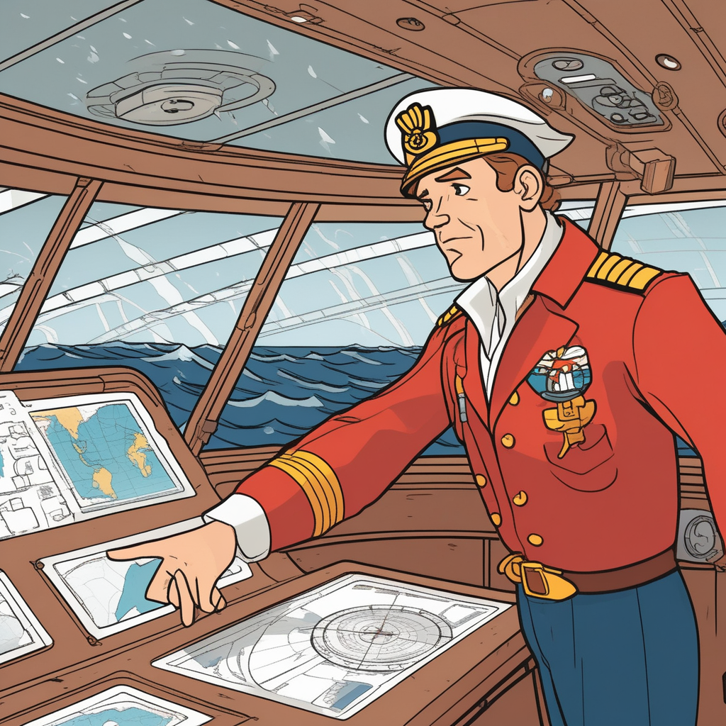 항해사가 배의 경로를 안내하고 있다