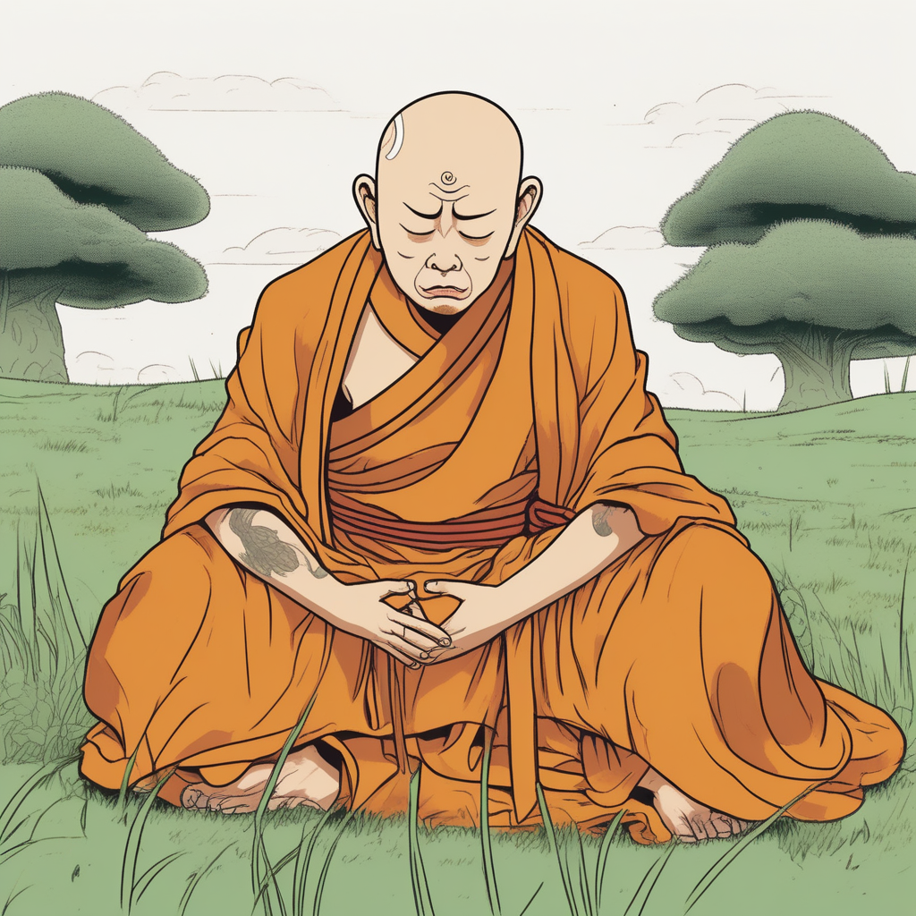This monk got burned by the grass... and the grass shows complete disdain for him!