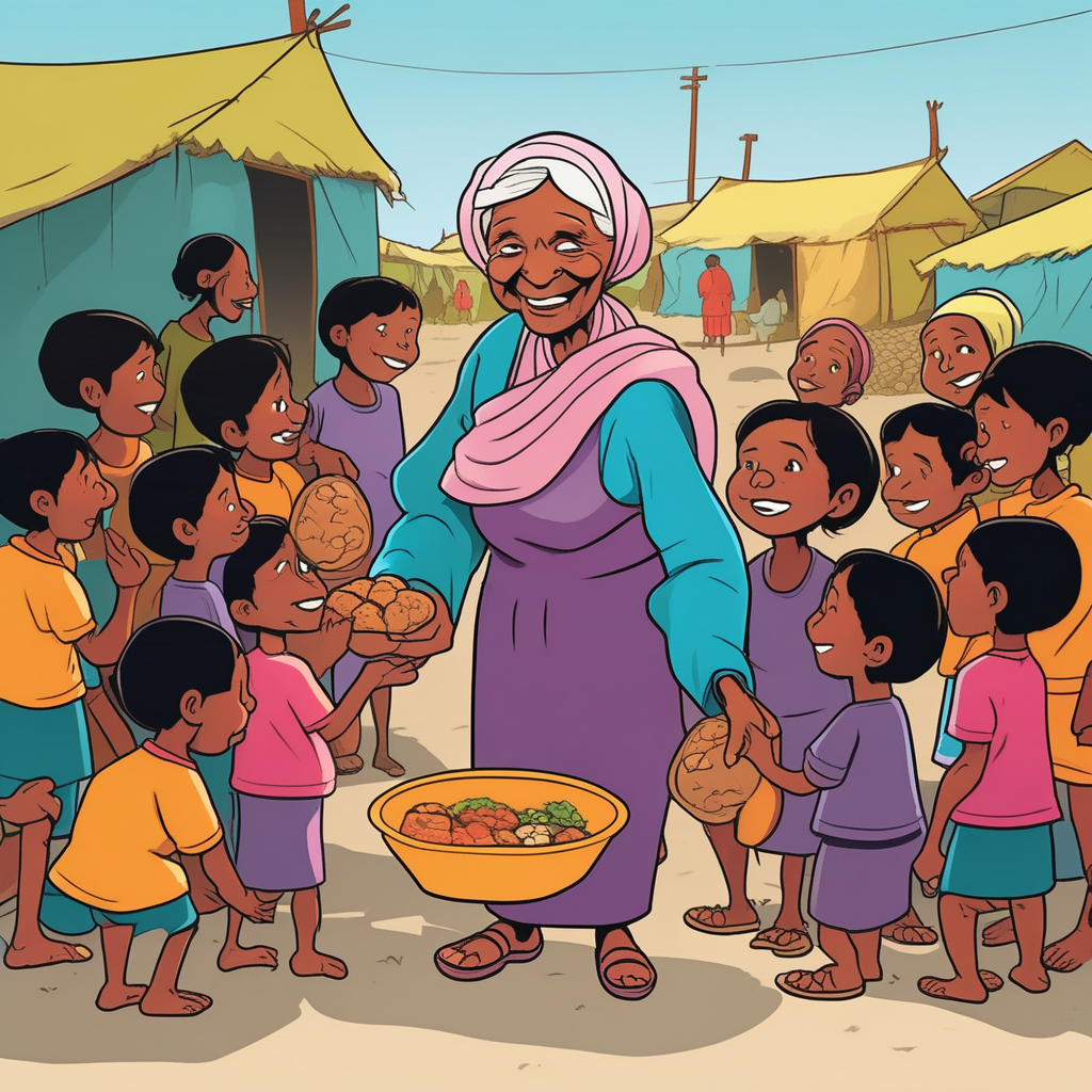 "My grandmother is so benevolent that she even feeds stray cats gourmet food."