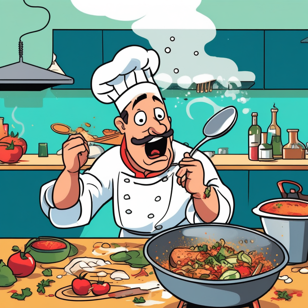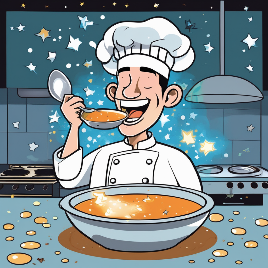 Chef doing a 'test' becomes 'taste' - testing flavors!