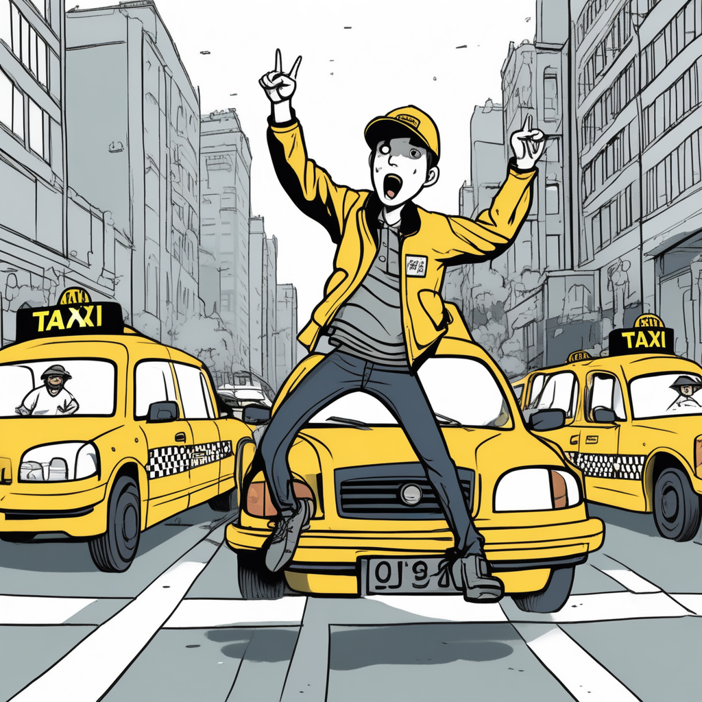 Yeah hurry! Grab a cab with the cap-wearing driver!