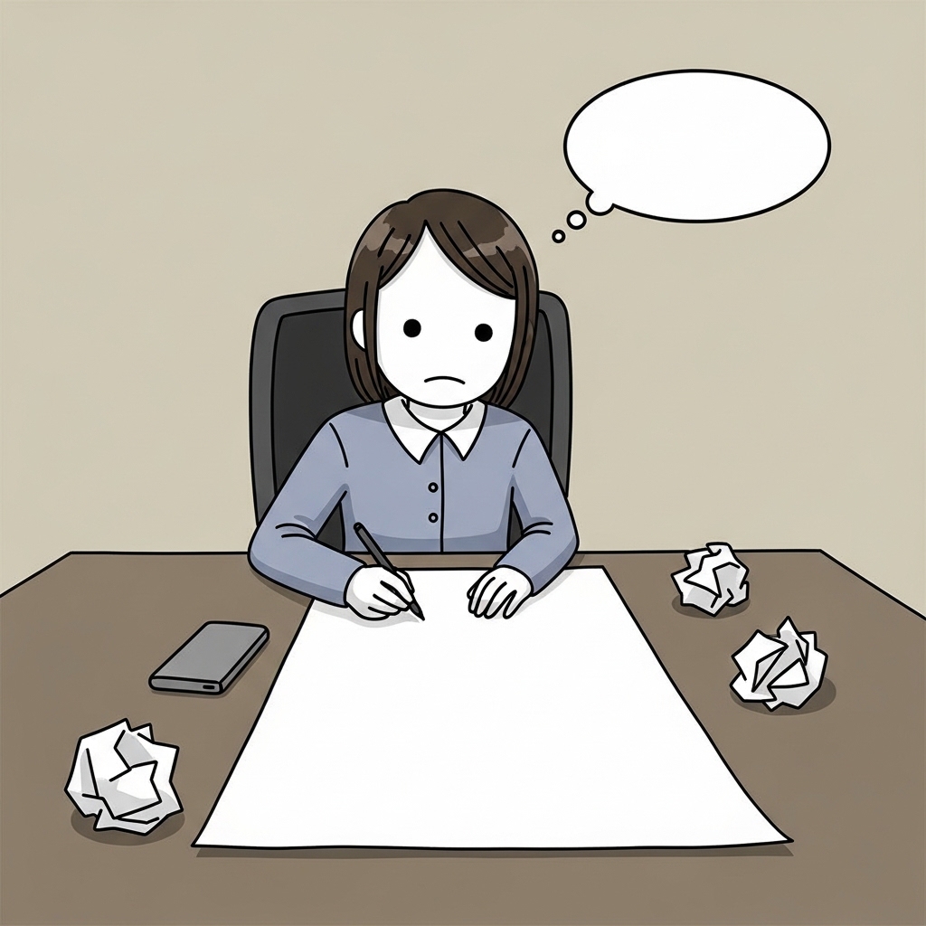 텅 빈 종이와 무표정한 얼굴
