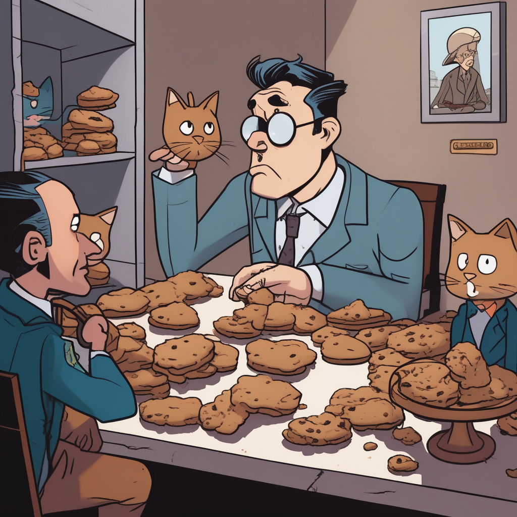 Sean protecting the cookies conducts an intensive inquisition to find the culprit!