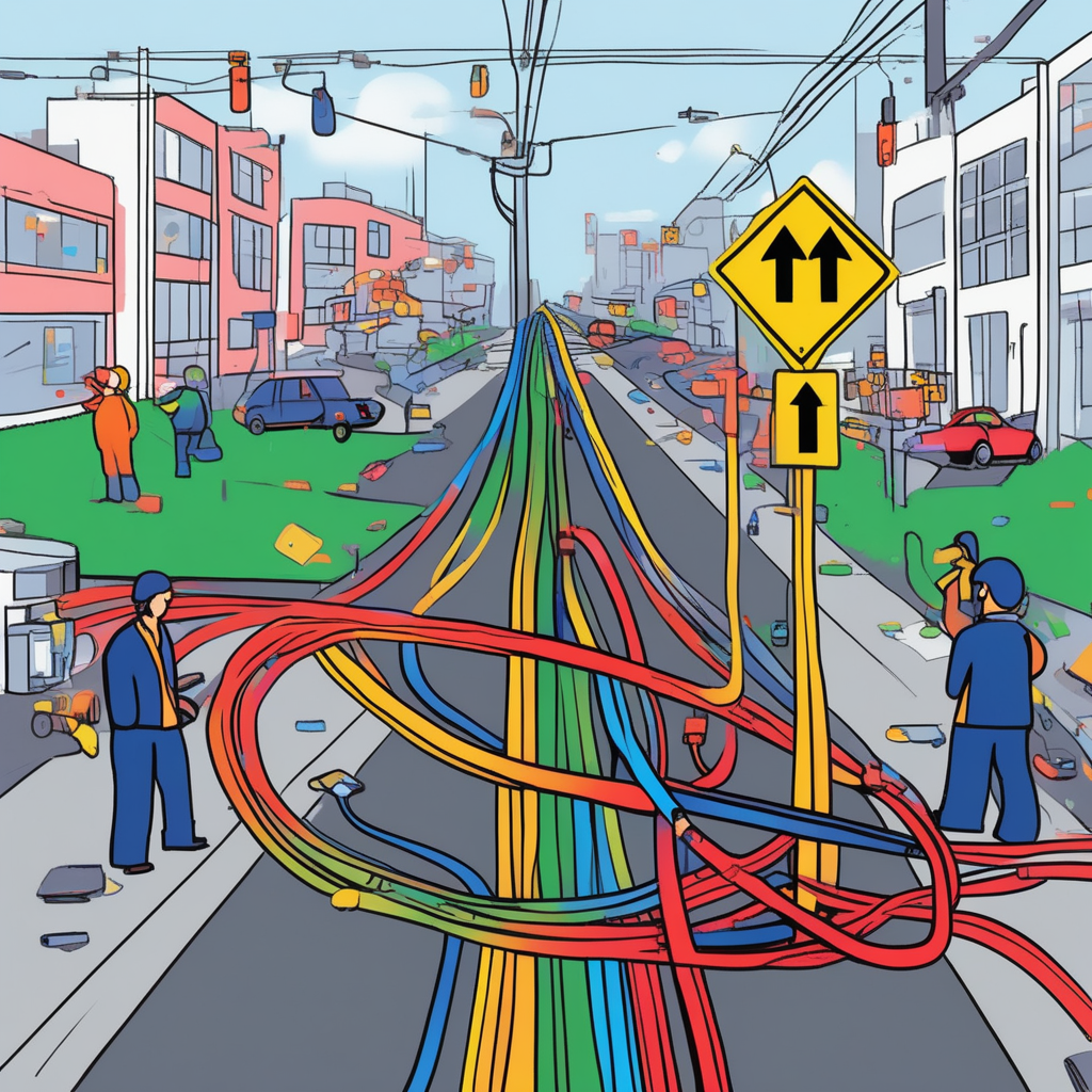 인터넷 색깔 선들이 교차로에서 엉켜있네! 어느 선을 따라가야 건널까?