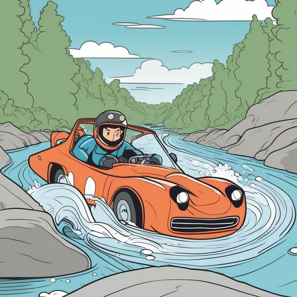 운전자가 강물로, 다이버가 되어 헤엄쳐!