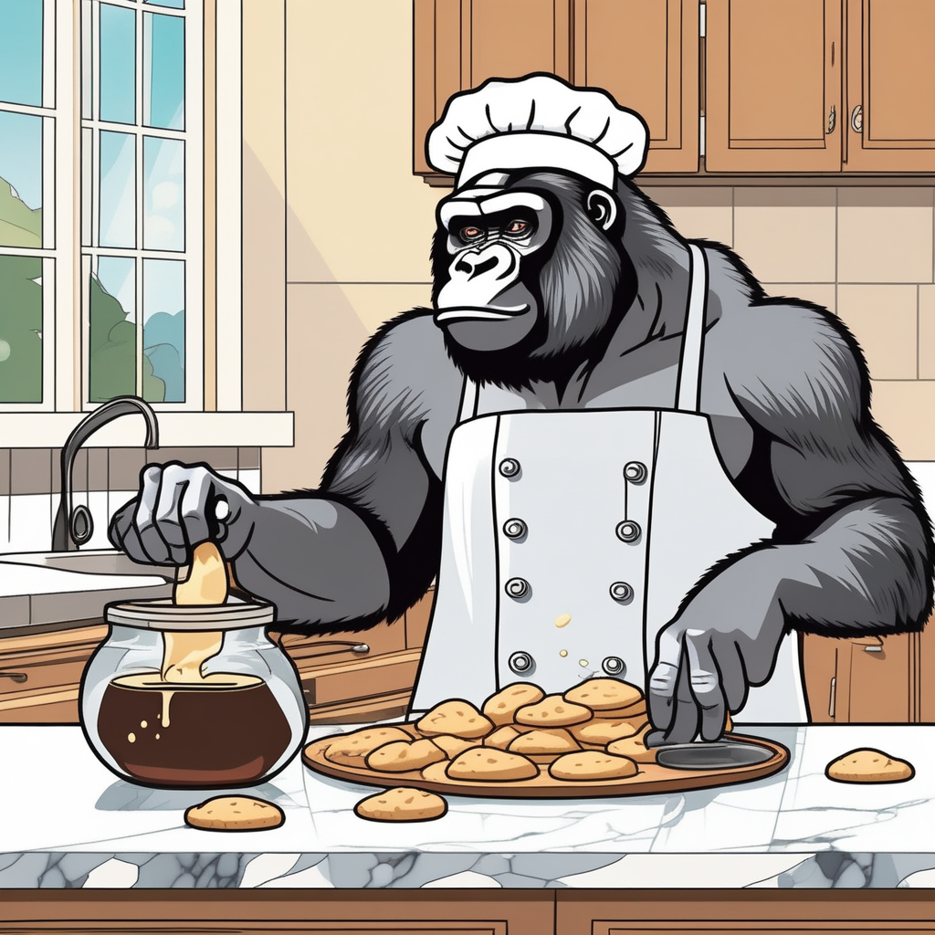 A gorilla bakes vanilla treats in his villa!