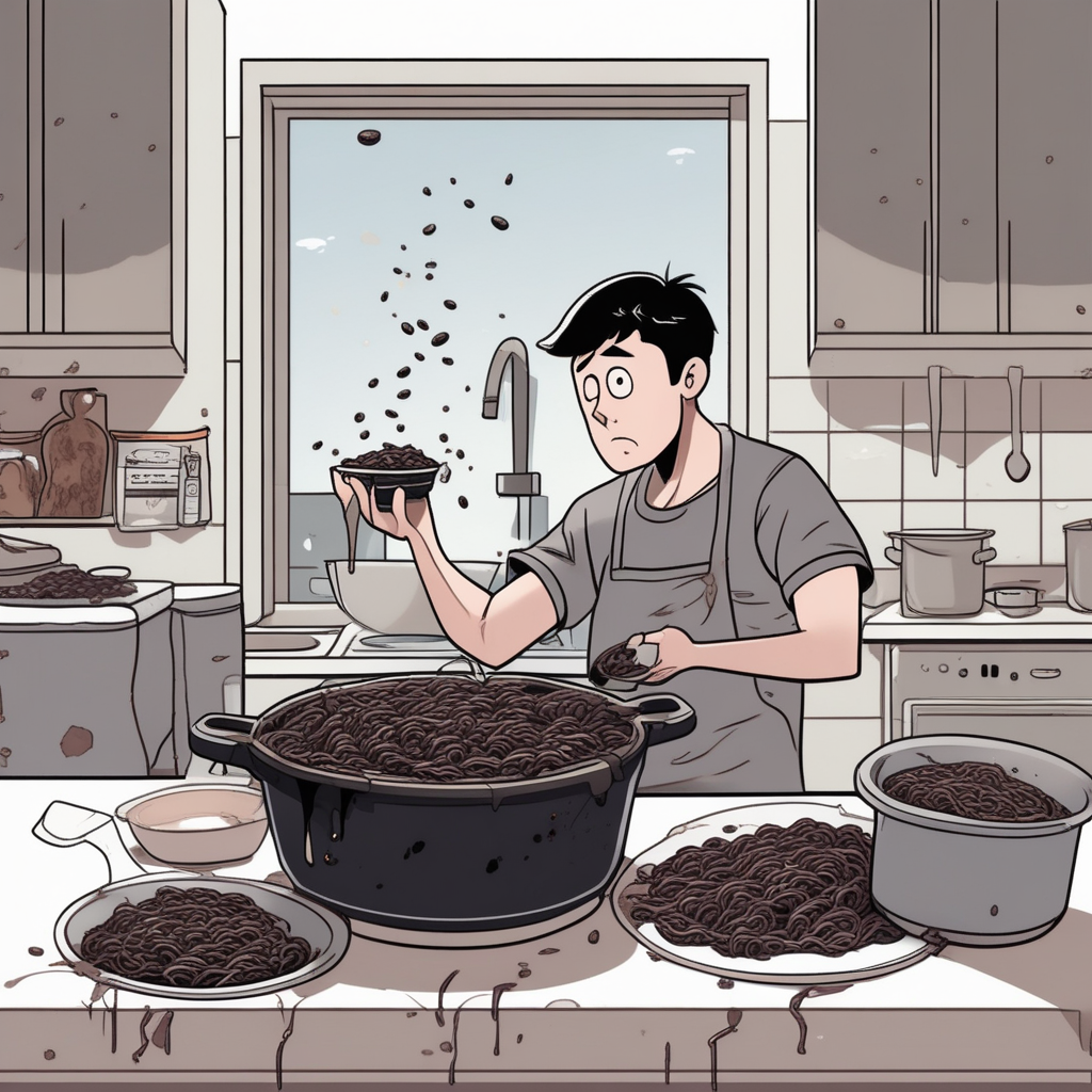Dean made the jjajangmyeon so messy and dirty - it's become completely dingy!