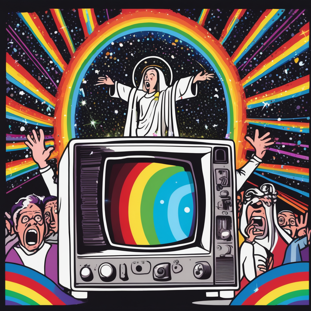 God makes the TV sparkle with laser - TING! Brilliantly clever and shining!