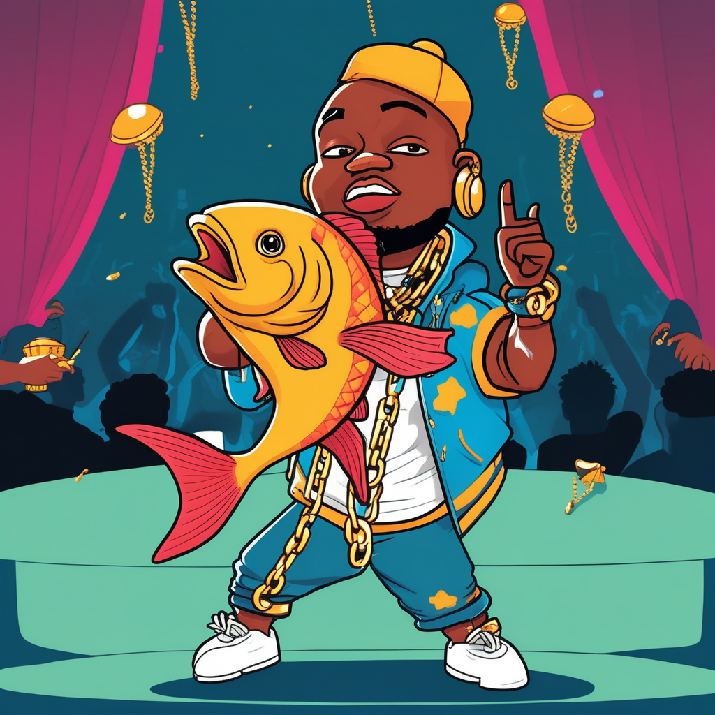 래퍼가 수상한 피시를 들고 무대에서 자유분방하게 공연한다!