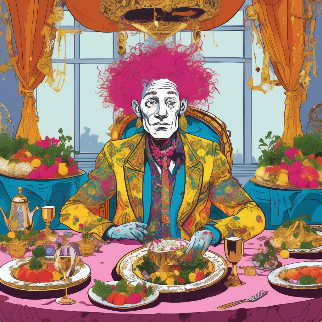 Raffish artist eats radish at a lavish feast!