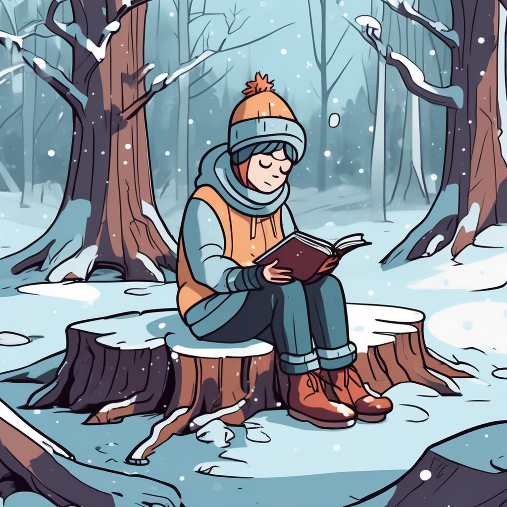 그루터기 위에 앉아 얼음처럼 차가운 곳에서 공부하니 극도로 힘들어!