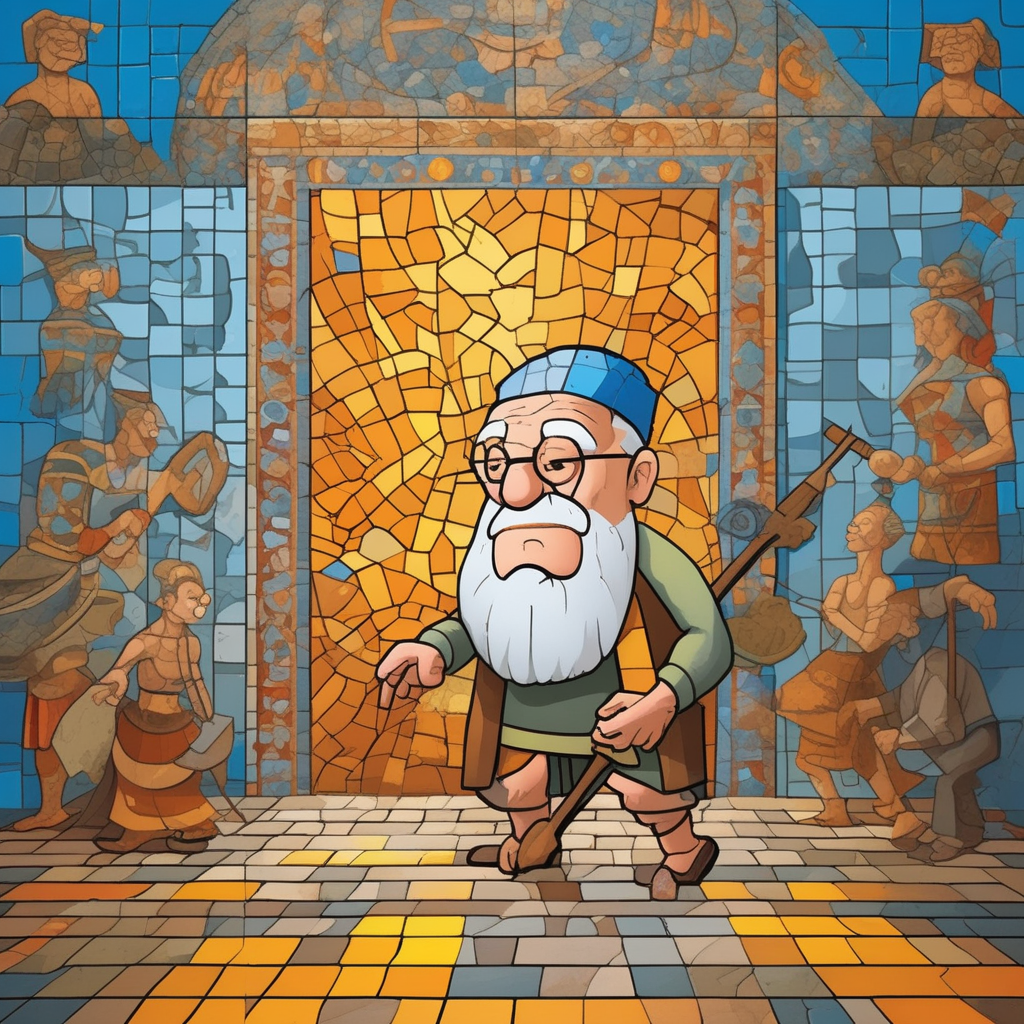 고풍스런 모자이크가 평범한 그림으로 변해간다