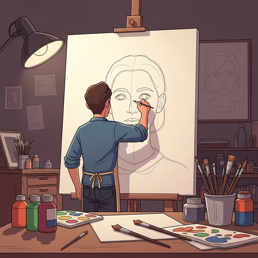 화가는 색을 칠하기 전에 먼저 형태의 윤곽선을 그린다.