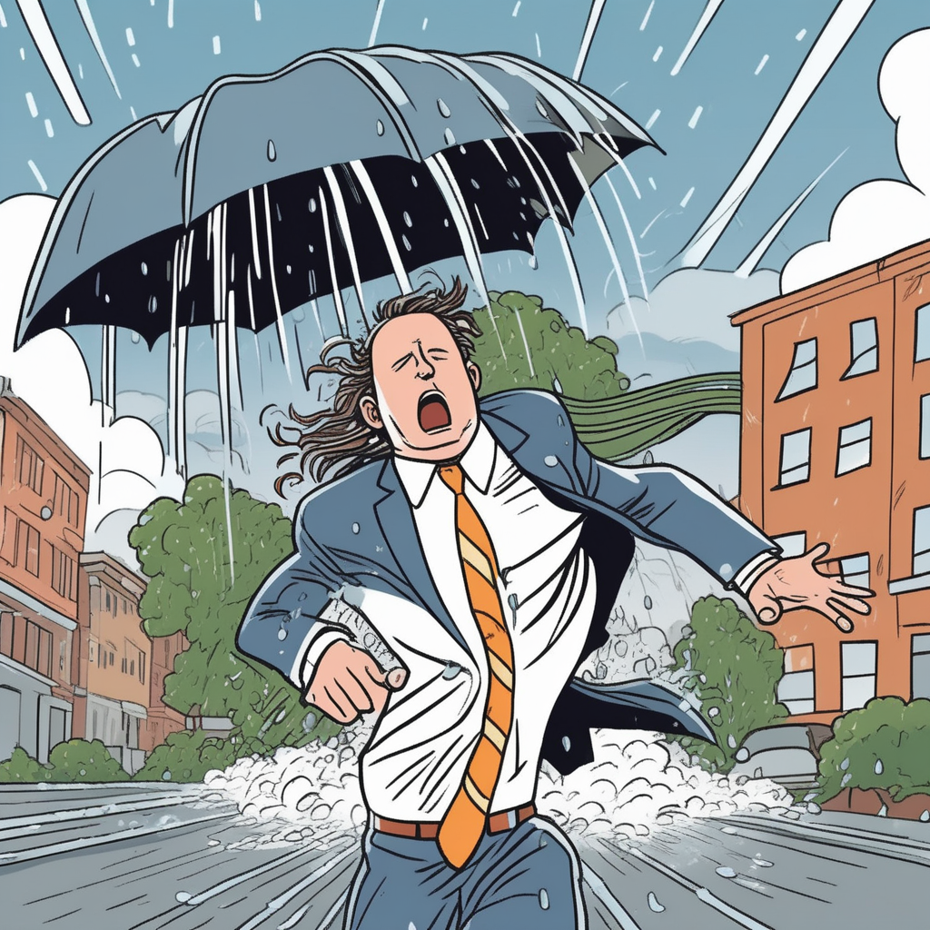 "The picnic was ruined by an unexpected rainstorm that soaked everyone's sandwiches."