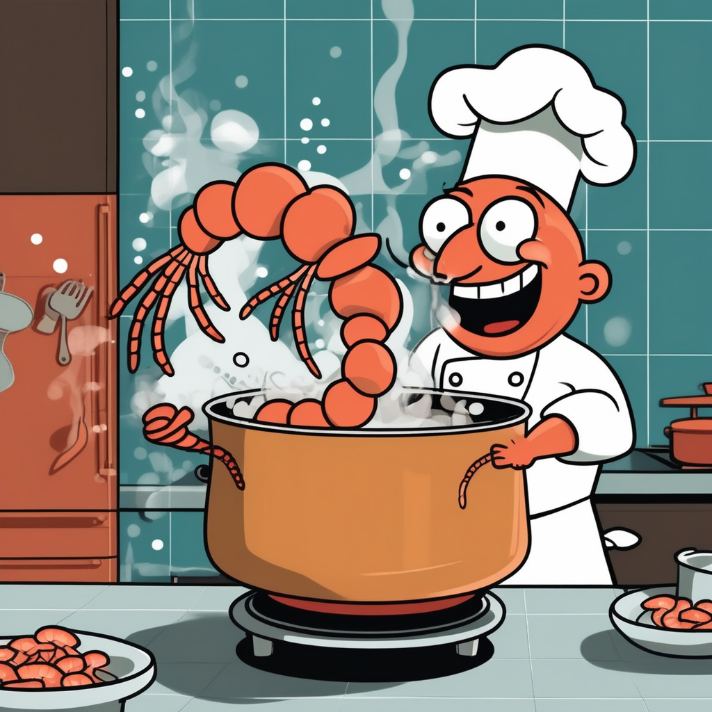 새우 한 마리 살짝 보이네, 구부러진 껍질 반짝이네!