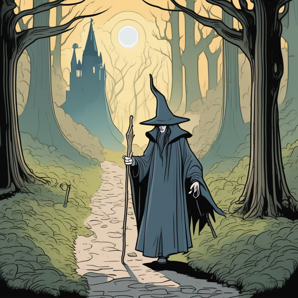The wanderer meets the sorcerer, who warns of the murderer ahead