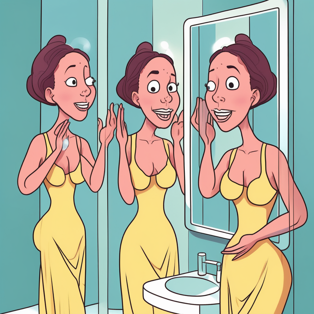 얇은 피부를 만지며, 환한 미소를 띠네!