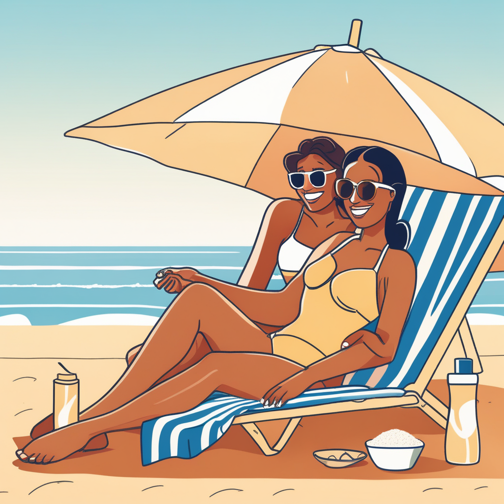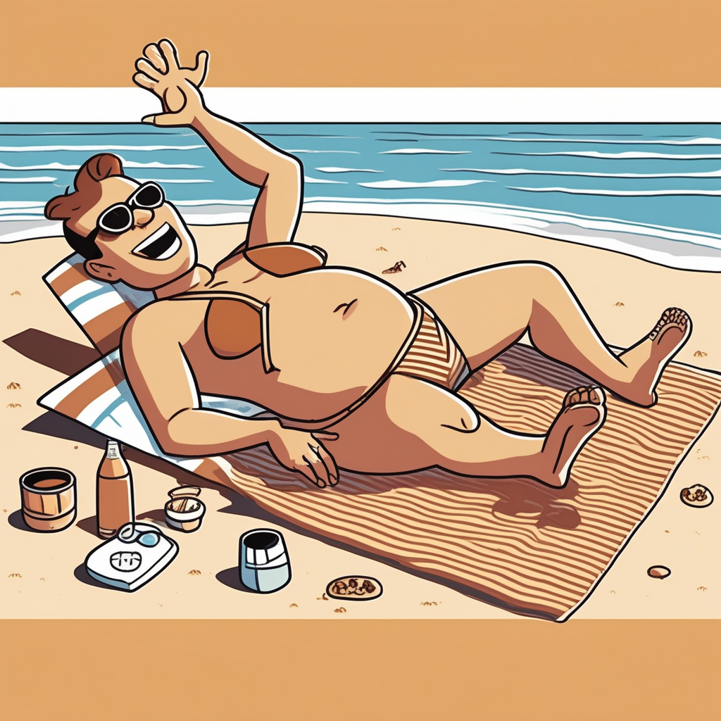 Making 'tan-tan' sounds while getting a tan at the beach!