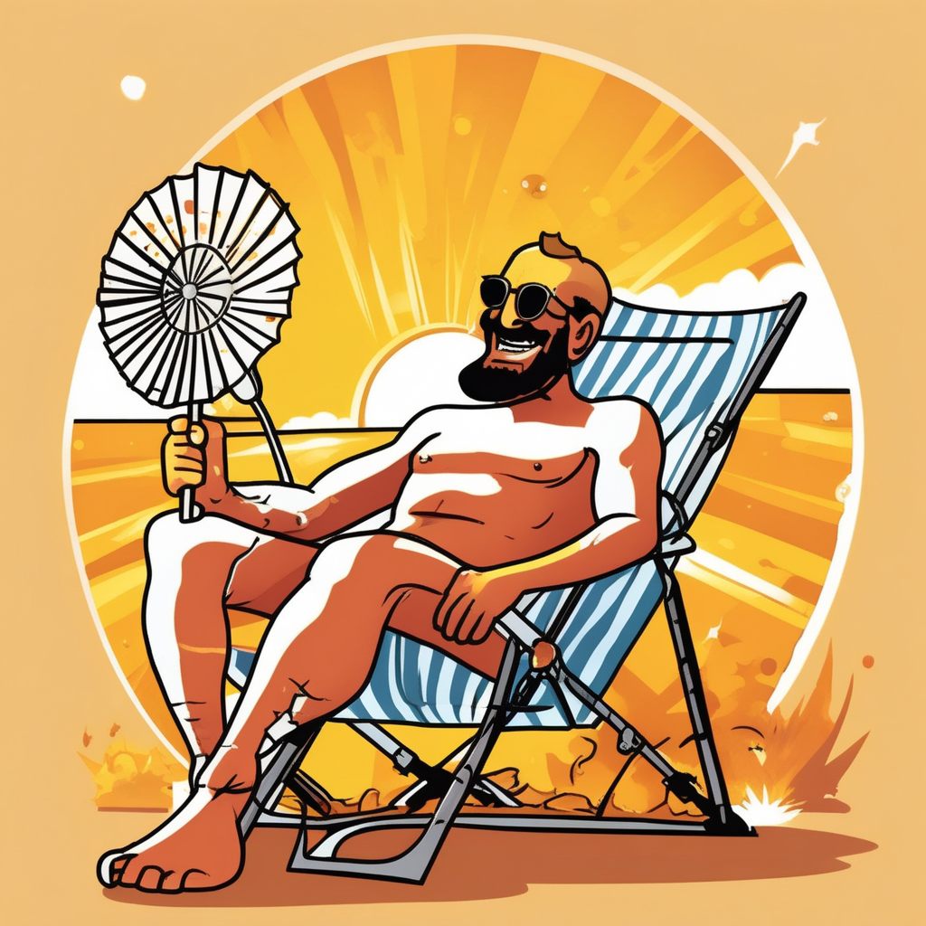 The man waves his fan, but still gets his tan!