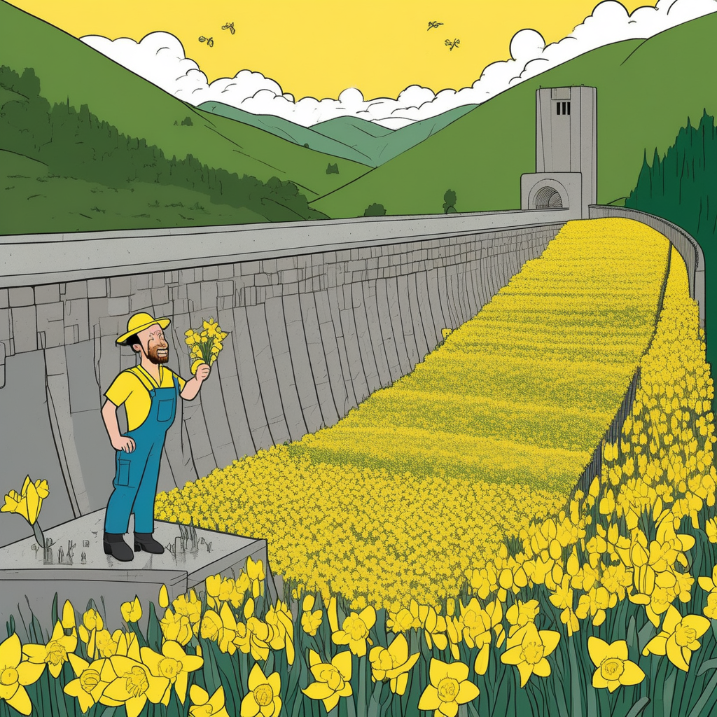댐에 퍼뜨린 노란 수선화가 폭발적으로 번져나간다!