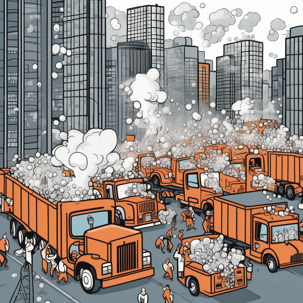 Hey! Trucks boiling frantically in the big metropolis!