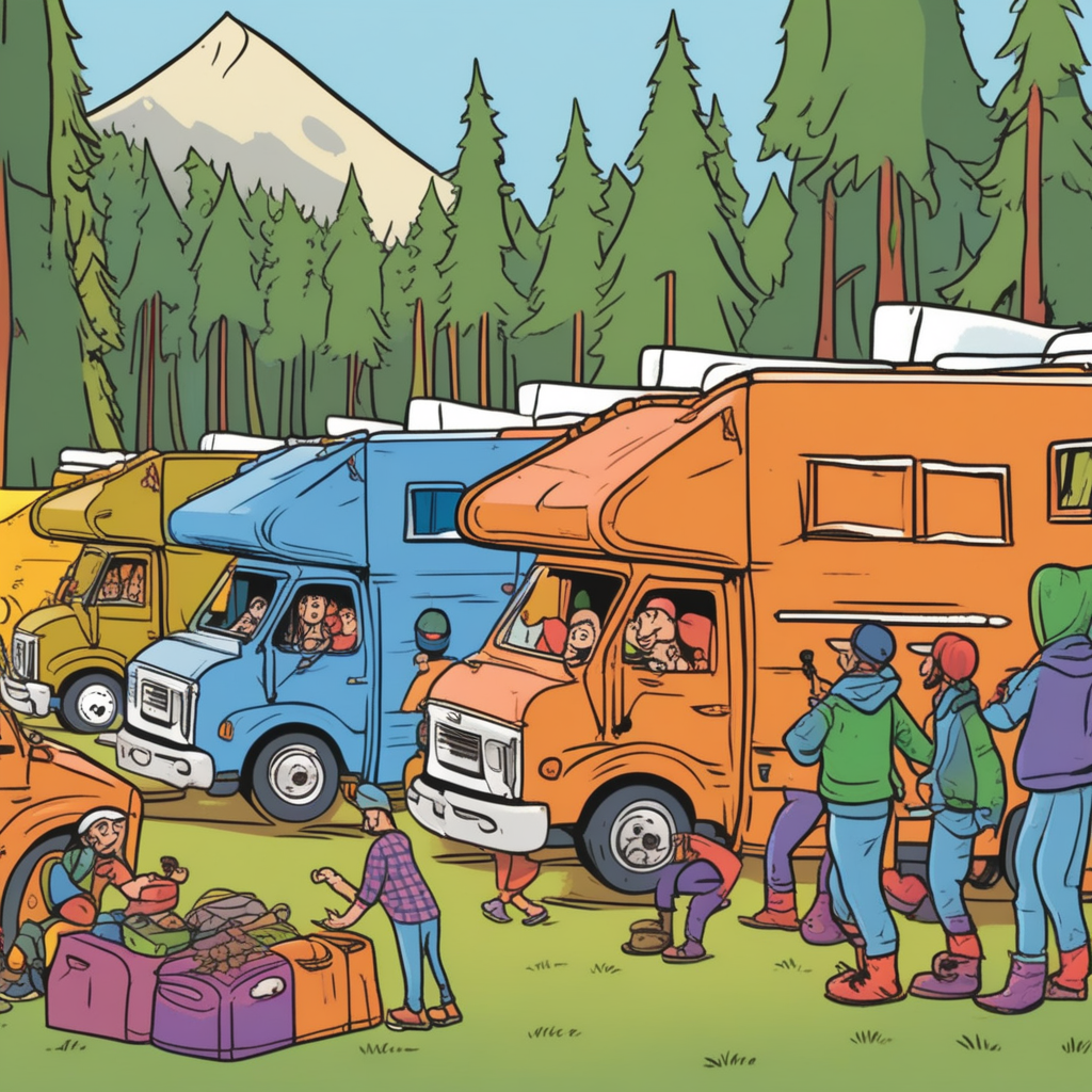 텐(10)대의 트럭이 텐트를 배달왔어요! 캠핑 준비 완료!