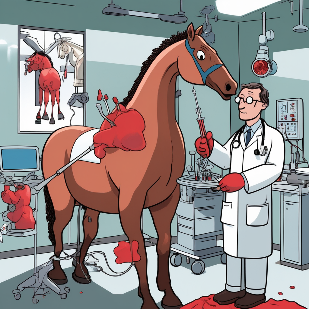 Horse doing medical practice badly - that's malpractice!