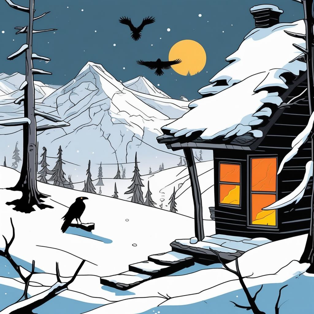 The shaven traveler finds haven, watched by a raven
