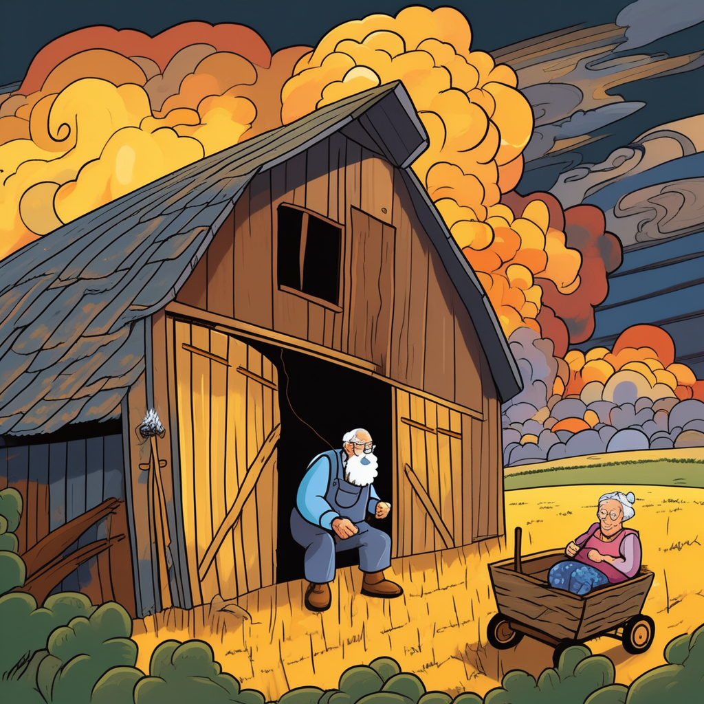 헛간에서 털실 뜨개질, 폭풍 경고하며!