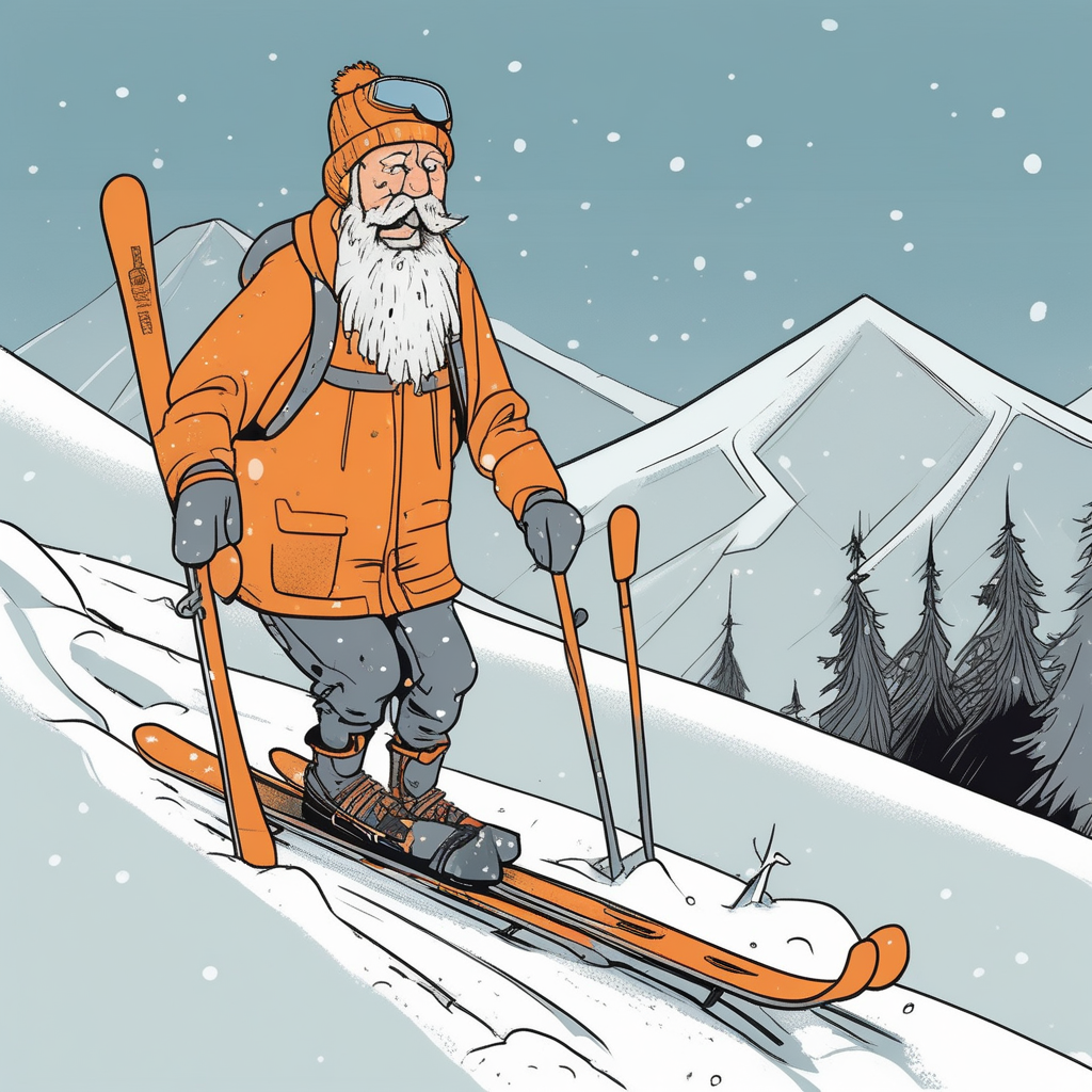 Russian ski grandpa with both rusty skis and rusty skills!